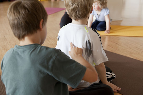 Kinder lernen spielerisch. Das gilt nicht nur für Yogaübungen, sondern auch für andere Lebensbereiche. Eine Kinderyogastunde sollte deshalb ein Abenteuer sein, das mit allen Sinnen erlebt wird. Kinder üben nicht Yoga, sie sind der Hund, Baum, Krieger, Schmetterling, den wir gerade darstellen. Der Fantasie sind keine Grenzen gesetzt und wir erforschen vielfältige Konzepte aus Ökologie, Biologie, Anatomie, Geografie usw.. Kinder sind natürlich wissbegierig und haben Freude daran zu lernen während sie sich bewegen.
